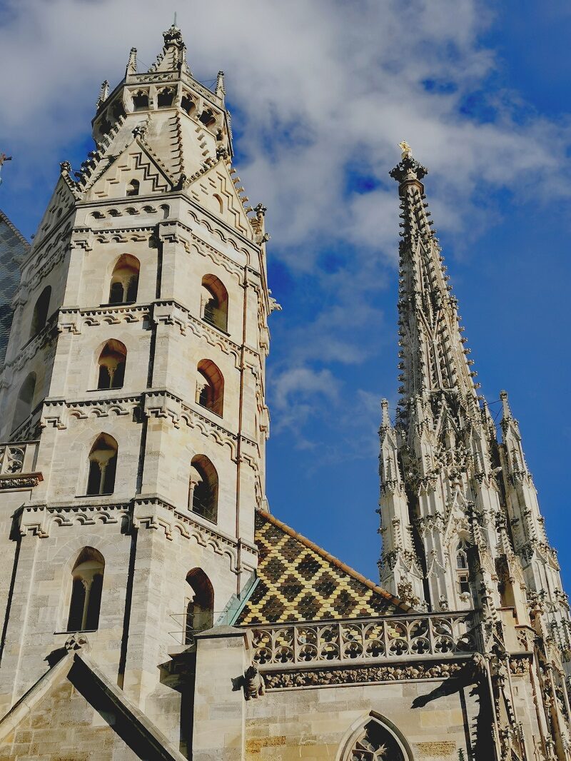 Schon bei der Führung rund um den Dom offenbart sich seine architektonische Vielfalt. Besonders eindrucksvoll ist das farbenprächtige Dach mit seinen über 230.000 glasierten Ziegeln. Die filigranen Strebebögen, Wasserspeier und Portale erzählen von mittelalterlicher Baukunst und vom Glauben vergangener Jahrhunderte. Der Südturm, liebevoll „Steffl“ genannt, ragt 136 Meter in den Himmel und ist ein Symbol für den Stolz und die Bedeutung Wiens.